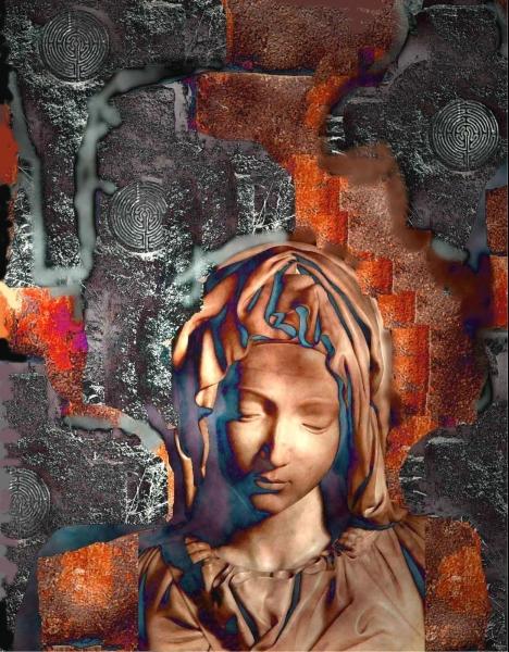 Maria (van Grieks Μαρία), Mirjam (van Hebreeuws מרים) of Maryam (van Arabisch مريم) is in het Nieuwe Testament en in de Koran de moeder van Jezus. De oorsprong van de naam is hoogst waarschijnlijk Egyptisch: Meriam, van Meri-Amon (wat betekent "de Geliefde van -de God- Amon"). Volgens de christelijke traditie is zij de dochter van Joachim en Anna;[1] in de Koran wordt melding gemaakt van Imraan als haar vader.[2] Voor katholieken is zij de belangrijkste heilige. In de Rooms-katholieke Kerk en Oosters-orthodoxe Kerk heeft Maria als Moeder van God een belangrijke rol in het geloofsleven. In de Orthodoxe Kerk is de gangbare uitdrukking voor Maria Moeder Gods en niet Maria. Er is binnen de theologie zelfs een complete discipline die zich speciaal op haar richt: de mariologie. Verschillende liturgische feesten en hoogfeesten worden ter ere van haar gevierd. Afbeelding: Maria pastel op papier van Martine Jacobs
